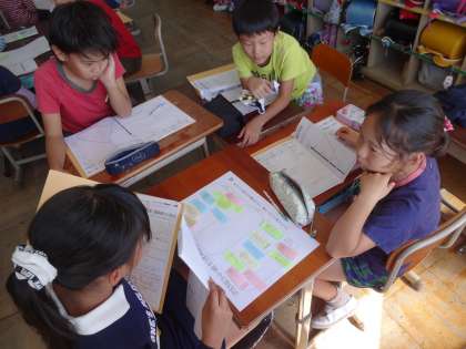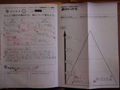 体験や話を聞いたことをもとに,地域の祭のみりょくを探っています。