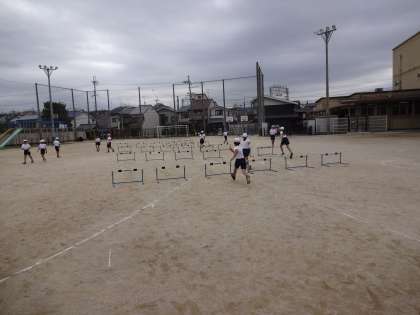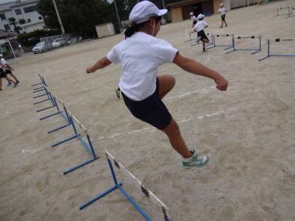 そのためにも,低く前に跳びこすことや,足の角度などを意識して練習しています。