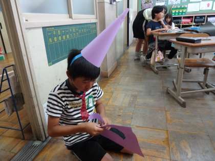 学級活動のイベント「ハロウィンパーティー」にむけての準備中です。