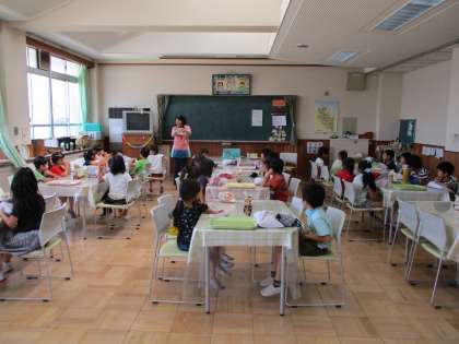 先週は,ランチハウス給食がありました。初めて入る教室に,「広いね。」「レストランみたい。」「天井が高いね。」「大きなしゃもじがあるよ。」と興奮気味の1年生でした。