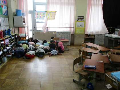 今日の2校時に防犯訓練を行いました。不審者が侵入して来た時に,自分の身を守り,逃げるためにどのようなことをするべきかを話し合いました。体育館に集合する時間も訓練を重ねる度に早くなっています。