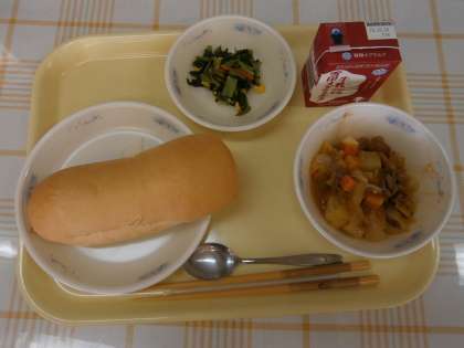 「コッペパンとぎゅうにゅうをいっしょにたべておいしかったです。ボルシチがあったかくておいしかったです。」…つくし学級