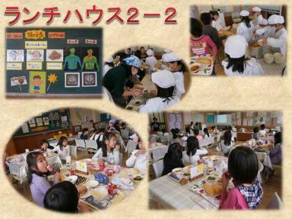 一緒に給食をたべた2年生は,4月に比べてどの子も食べる力がつき,苦手な物の減らさずにしっかり食べられていることに驚かされました。これなら,3年生になって主食・主菜・副菜が増えても大丈夫ですね。給食調理員さんが食べる様子を見に来てくださいました。食べるのが早くなり,頑張っているようすを褒めていただきました。