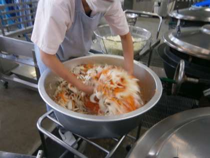 キャベツ・にんじん・たまねぎ・しめじを混ぜ合わせます。