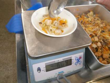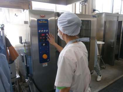 中心まで熱が入っているか確認して 各クラスに配缶する。
