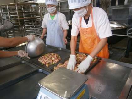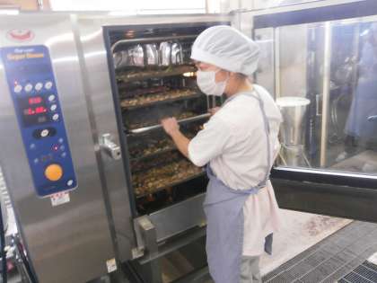 子どもたちが楽しみにしていた『鶏肉のてり焼き』は,スチームコンベクションオーブンでつくる人気メニューです。