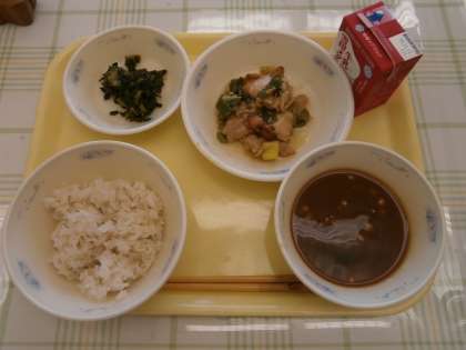 今日は,和食の基本の形一汁二菜の献立でした。