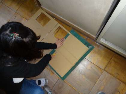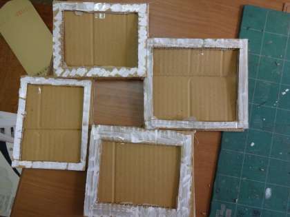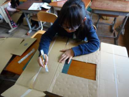 図画工作科で,ダンボールを使って写真たてを作っています。