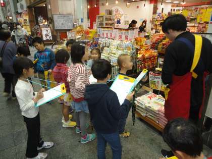 生活科の学習で,大手筋商店街・納屋町商店街へお店インタビューに行きました。興味をもったお店ごとに班になり,質問を考え,取り組みました。インタビューのマナーを守りながら一生懸命頑張っていました。初インタビューはとてもいい経験になったと思います。