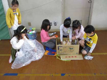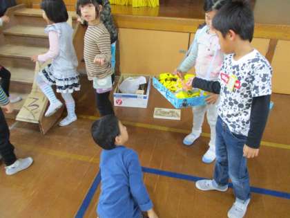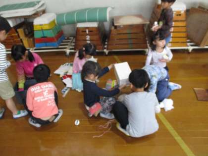 各チームに分かれて,遊びの場をセッティングします。自分たちも遊びたいですが,ガマンガマン…