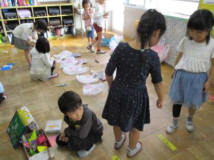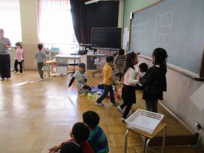 次の日は保護者の方も参加してのあきまつりです。教室を綺麗に掃除して,ドキドキしながら待ちます。今日は子どもたちもお客さんになります。