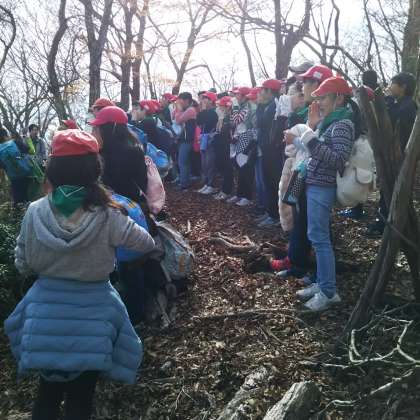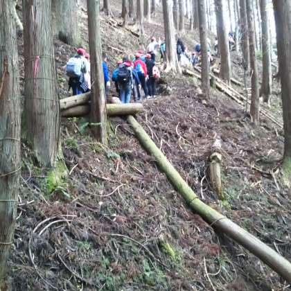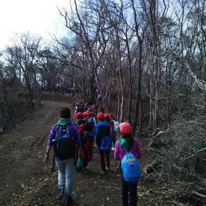 山の景色を楽しみながら,頑張って登山をしています。