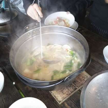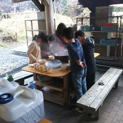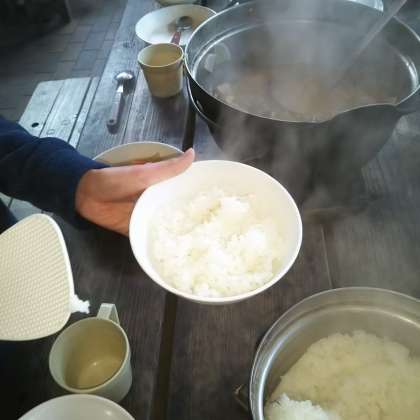 自分たちでおこした火を使って,自分たちの力だけで美味しい豚汁とご飯ができました!!