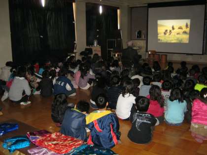 そこで,毎年,三増先生に来て頂き,モンゴルについてたくさんの写真と体験談・民族衣装や実際の馬頭琴をみせていただいて楽しく勉強しています。