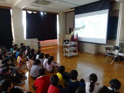 今日は,京都大学の留学生のイム・ヘリ先生からハングルのことや韓国の昔話など,韓国について教えていただきました。