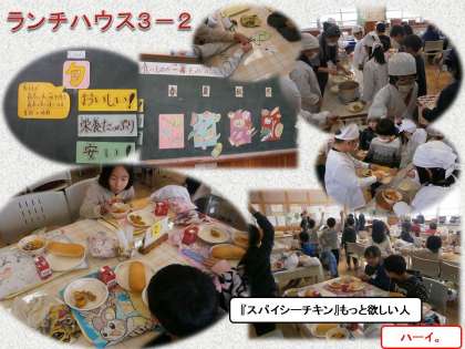 「スパイシーチキンがカリカリでおいしかったです。すこしあぶらのあじがして,よりおいしかったです。」…1年1組