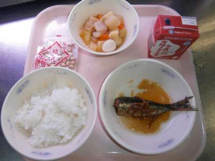 今日の「いわし」は,京都府に水揚げされたものを京都市給食協会に納入していただき「地産地消」の献立にしました。とても脂ののったおいしい「いわし」でした。子ども達も上手におはしを使って骨をとったり 中には尻尾まで骨ごと食べられていたりする子もいて,ほとんどの子どもがしっかり食べられていました。きっと福がいっぱい来ることでしょう。