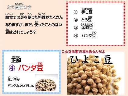 食後の感想の中に「いり豆と牛乳を食べたら きなこの味がしました。」と書いてくれている子どももいました。子ども達の味わいを言葉で表現すると,とってもおもしろいなと笑顔になりました。