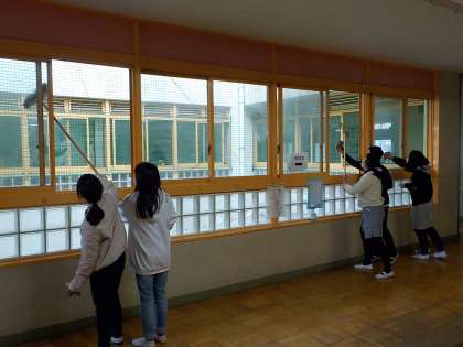 そうじ道具を自分たちで取りに行き,一生懸命に掃除していました。
