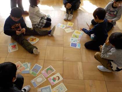 今日は,小さな巨匠展に向けてどんな作品を作るかを話し合ったり,みんなで仲良くカルタをしたりしました。