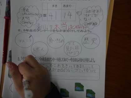 今回は散策した体験と5年生のアンケート結果から分析をしてみました。