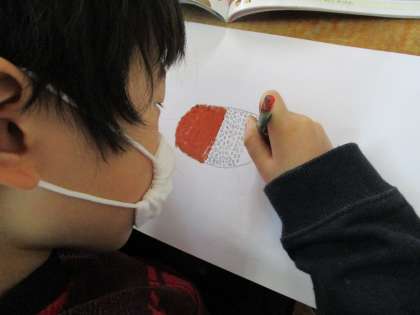 図工科「ごちそうパーティーをはじめよう!」の学習です。どの学級も,普段食べられないような夢のごちそうを描いています。「すごいアイスの量だね!」「おいしそう!」と想像を膨らませています。