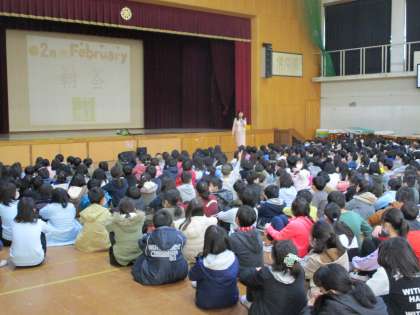 2月の朝会がありました。先日,全校で歌った合唱をみんなで振り返りました。歌を歌うことで,元気になれたり,感動したり,仲良くなったり,今年度たくさんの思い出ができました。大きくなっても,この経験を忘れずにいてほしいです。