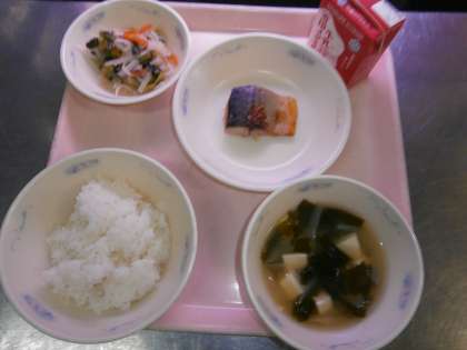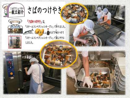 今日は,スチームコンべクションオーブンを使った焼き魚『さばのつけ焼き』でした。回数を重ねるごとに 予熱温度や焼くモードや温度と時間を工夫して,ふっくら香ばしく,とってもおいしく焼き上げることができるようになりました。子ども達にも大人気です。つくし学級の児童が「和食だね」と言っていたそうです。そして「Saturation」と感想を書いてくれました。「満腹」て表現してくれたようです。インフルエンザや体調不良の子どもの多いクラスでも残菜はほとんどありませんでした。