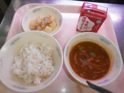 今日は,子どもたちに人気のメニュー『ハッシュドビーフ』と『ジャーマンポテト』でした。