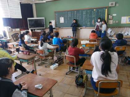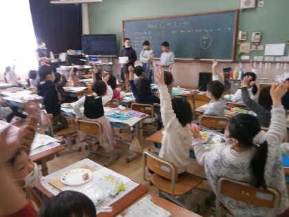 給食週間の取組で 給食委員会では,中間休みにジェスチャーゲームをしています。