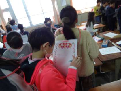 最後には,2年間過ごした友だちや家族のみんなにありがとうのメッセージを書き合い,温かい雰囲気で学習を進めることができました。
