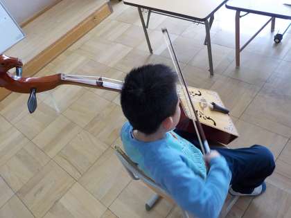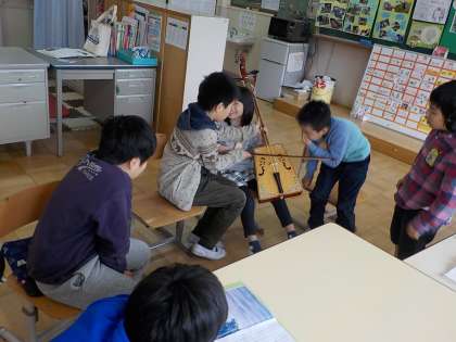 今日はグループの一つが『スーホの白い馬』の学習で,実際の馬頭琴に触れました。
