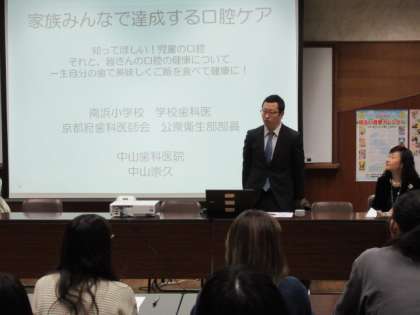 今日,本校の学校歯科医をして頂いています,中山 崇久先生にお越し頂き,「家族みんなで達成する口腔ケア〜知ってほしい!児童の口腔 それと,皆さんの口腔の健康について一生自分の歯で美味しくご飯を食べて健康に!〜」についてご講演頂きました。