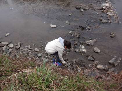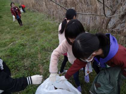 総合的な学習の時間「わたしたちの濠川」で,川の清掃活動を行いました。