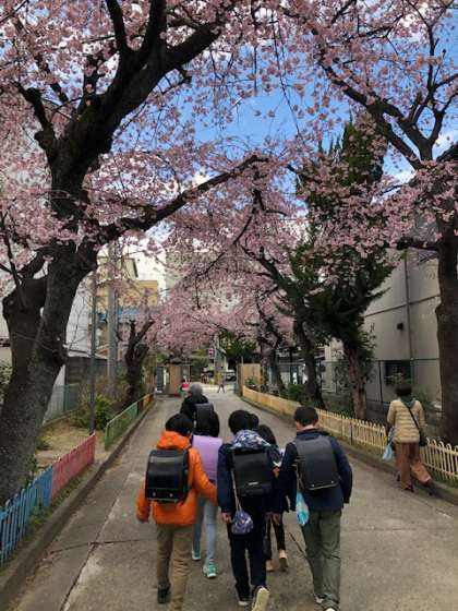 新しい登校班長にバトンを渡し,残り4日の登校は,最後尾から見守ります。