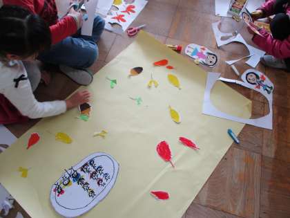 子どもたちは集中して作業をしながら,「これは,この場所におくから…」と配置を考えながら作り上げていきます。