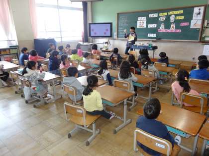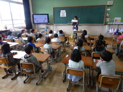 栄養教諭の片山先生から給食についてのお話を聞きました。