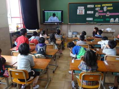 続いて,当番で使うエプロンのたたみ方を教えてもらいました。