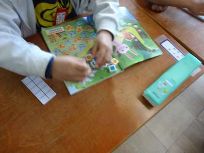 算数では,教科書の挿絵を使って数を学習をしました。