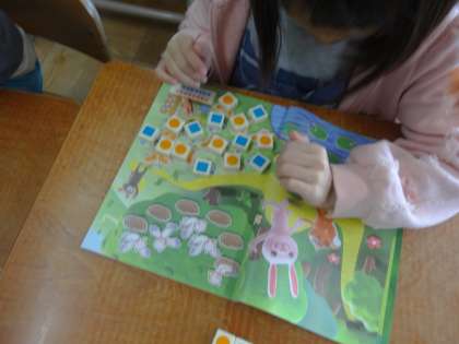絵の上にブロックを置いて,数の違いを比べました。