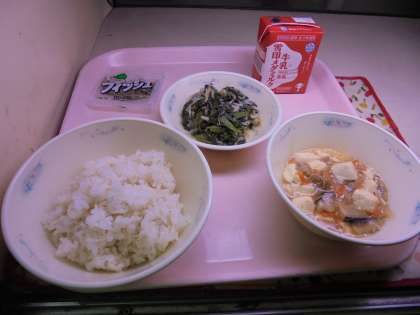 今日は,具材のたくさん入った「五目どうふ」と
