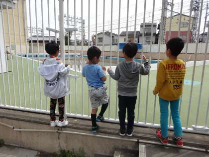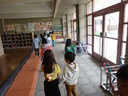 靴に履き替えて,出発です。プールから運動場,畑に行きました。