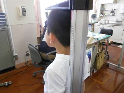 4月の身体計測が終わりました。身長や体重を計るのは成長の様子を知るためにとっても大切なことであると子どもたちに話しました。身体計測は4月,9月,1月の3回です。(6年生だけ成長の記録作成のため3月も実施予定です)その他の時期でも「健康相談」としていつでも保健室で計ることができます。ご家庭でも気になることがありましたら,お気軽にお知らせください。健康診断の結果,受診の必要な場合はすぐにお知らせしますが,異常がない場合は7月に「健康の記録」に記入してお知らせします。