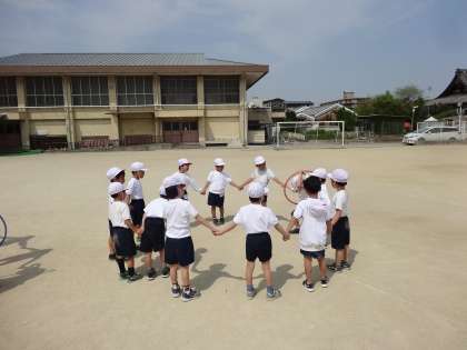 遊具の使い方の復習やフープを使った運動,スキップなどの練習をしました。