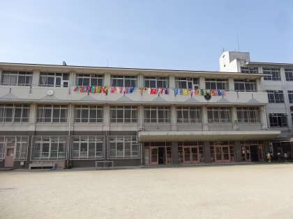 頑張って作った自分のこいのぼりを校舎に吊るしました。