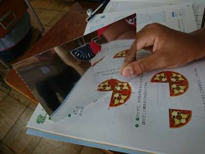 今日は,見本と同じようになるように,鏡を使って図形をつくりました。