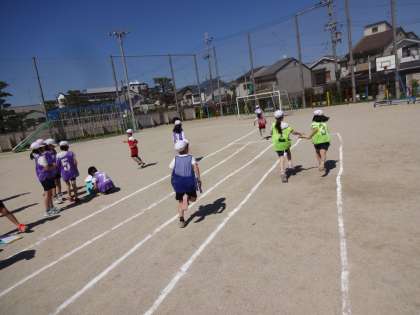 チームでリレーの記録アップを目指して頑張っています。