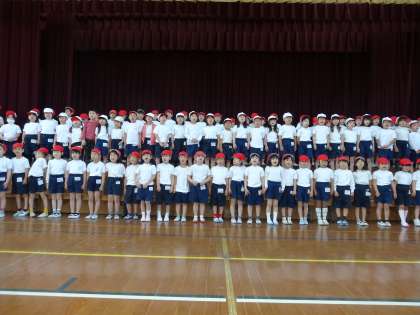入場してから座る場所の確認をしました。明日から言葉の練習をしていきます。