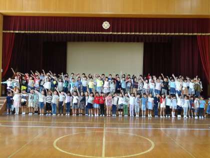 体育館の広さで,声をみんなで合わせるのが難しいようです。明日も練習します。