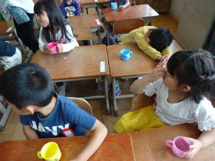 木曜日までの3回は,みんなで水で「ぶくぶくうがい」をして練習しています。